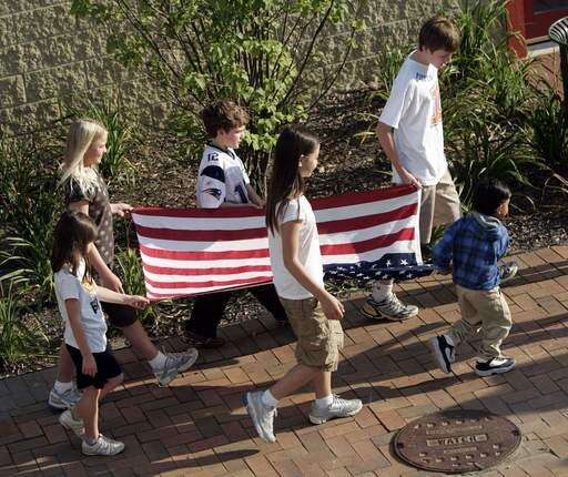 Prairie Crossing Charter School students carry the American flag during a ceremony in remembrance of the 9/11 attacks Friday morning in Grayslake. Steve Lundy | Staff Photographer