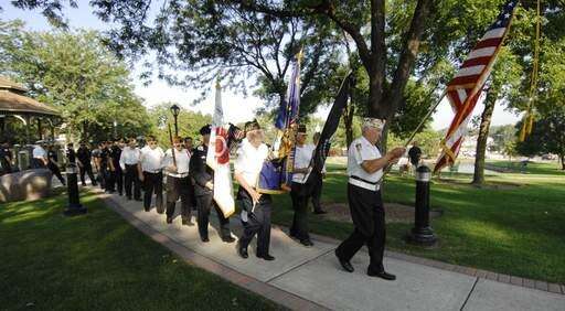 The Itasca VFW leads a procession to begin the 9/11 memorial service in Usher Park in downtown Itasca Friday. Scott Sanders | Staff Photographer