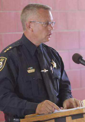 Mount Prospect Police Chief John Dahlberg speaks at the 9/11 memorial ceremony Friday in Mount Prospect. Bill Zars | Staff Photographer