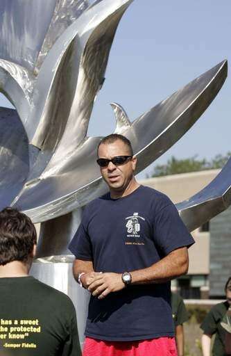 Elburn resident and former Glenview firefighter Paul Wdowicki talks about his 9/11 memorial garden in his front yard. Members of the Elburn fire department gathered on his front lawn for a short ceremony to remember the day Friday. Laura Stoecker | Staff Photographer