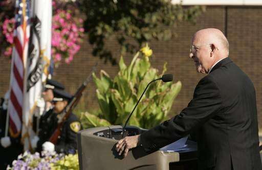 Elgin mayor Ed Schock delivers some opening remarks as part of the Sept. 11 memorial service Friday. Christopher Hankins | Staff Photographer