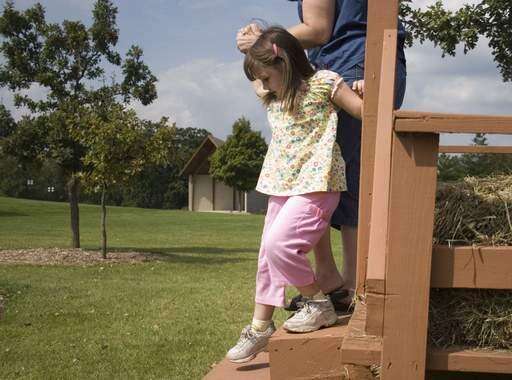 Ava Mild, 5, carefully steps down from the hay ride at Lions Park during the Cary Fall Family Fest Saturday. StephanieJanisch | Staff Photographer