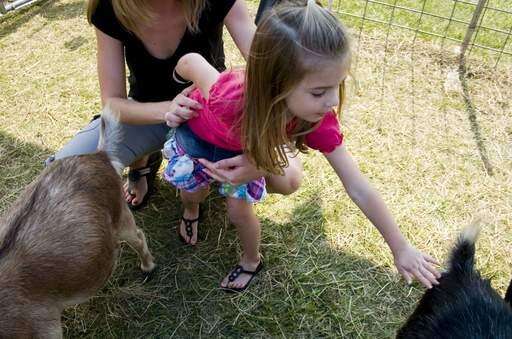 Kate Gribbens, 3, reaches out to touch a goat at the petting zoo at the Cary Park District's Fall Family Fest. StephanieJanisch | Staff Photographer