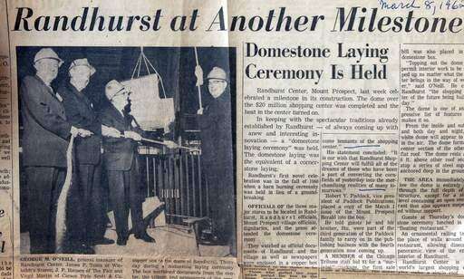 The roughly 2-by-3-foot copper time capsule, with the words "Randhurst Center" on top, reportedly contained copies of speeches made the day the mall opened, mall blueprints, newspapers and a dollar bill.