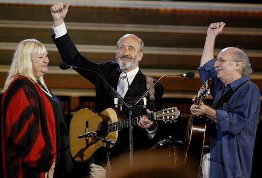 In this July 27, 2004 file photo, Mary Travers, Peter Yarrow and Paul Stookey. of Peter, Paul and Mary perform before the delegates during the Democratic National Convention in Boston. Associated Press