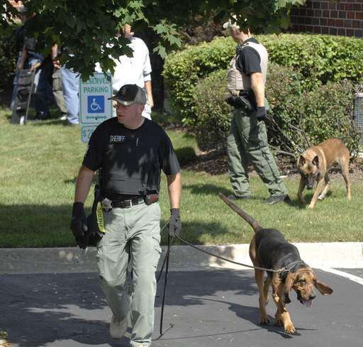Police and dogs search Ashton Condominiums in Arlington Heights for a prisoner who overtook detectives and escaped in the northwest parking lot of Meijer parking lot on Golf Road.