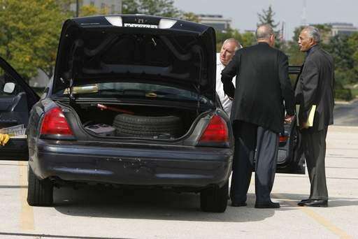 A car that was transporting a prisoner, at left, in the northwest parking lot of Meijer parking lot on Golf Road.