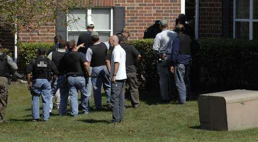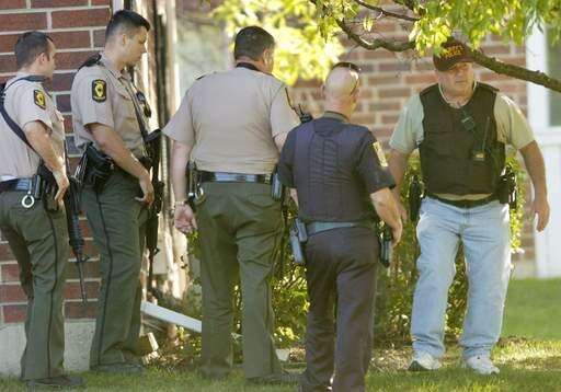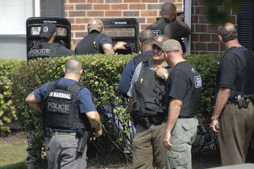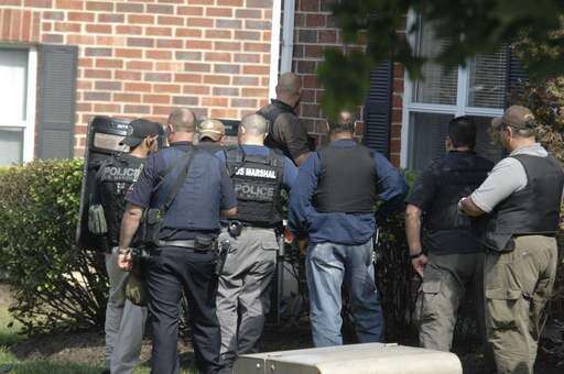 Police surround the apartment building in Arlington Heights where they think escaped criminal Robert Maday is hiding.