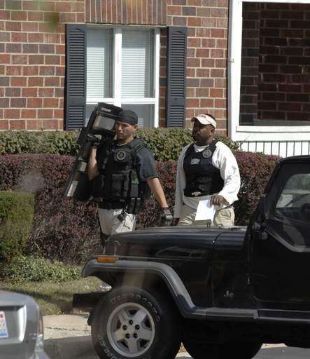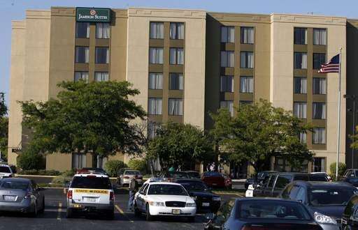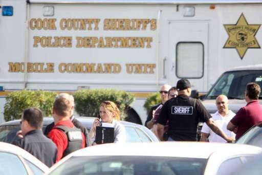 Officers work from the parking lot of Jameson Suites in Arlington Heights on Wednesday.