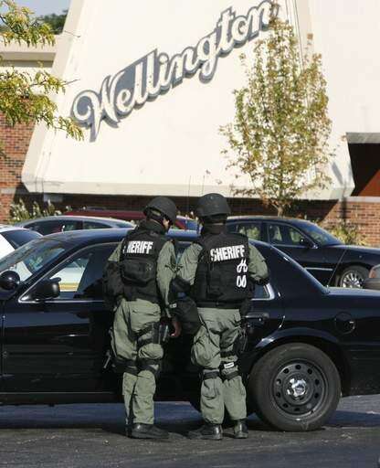 Tactical officers work in the parking lot of Wellington Restaurant in Arlington Arlington Heights.