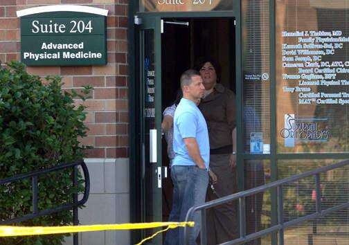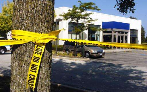 Police tape off the parking area of the Blackberry falls Professional Center at 2353 Hassell Road in Hoffman Estates where escaped prisoner Robert Maday was said to have carjacked a vehicle Friday morning.
