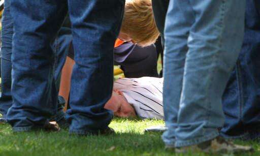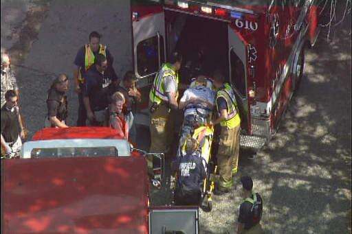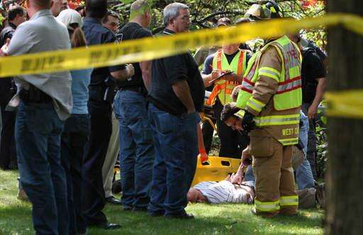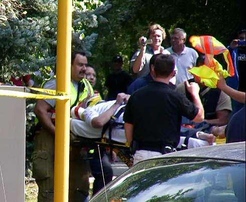 Robert Maday on a stretcher in West Chicago following a short police chase.