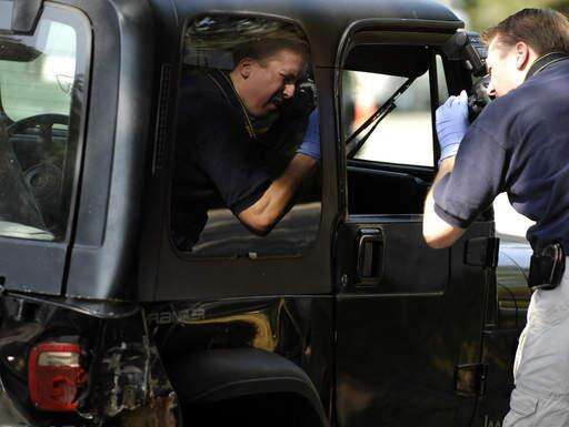 Robert Maday is arrested shortly after crashing his car Friday in West Chicago.