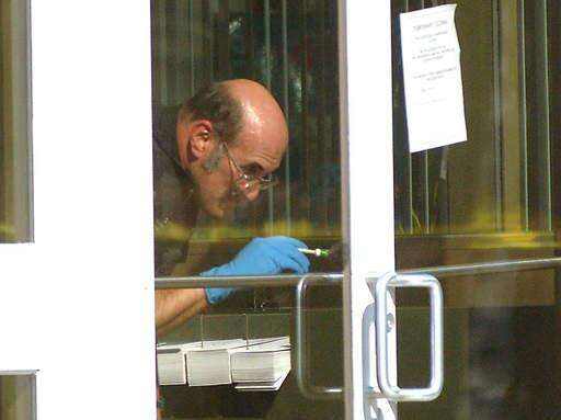 Police evidence tech on the scene of the bank robbery Friday morning in Bloomingdale.