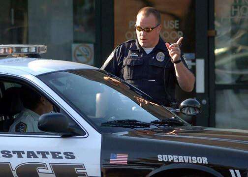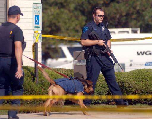 Employees of nearby businesses watch the police activity Friday morning in Hoffman Estates.
