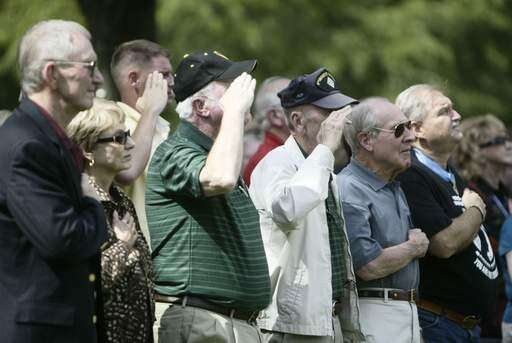 Medal of Honor recipients salute the flag during the national anthem at Cantigny Park for National POW/MIA Recognition Day on Saturday.
