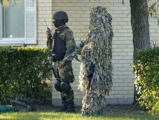 Police surround the apartment building in Arlington Heights Thursday where they think escaped criminal Robert Maday is hiding. Maday was captured Friday in West Chicago following a police chase.