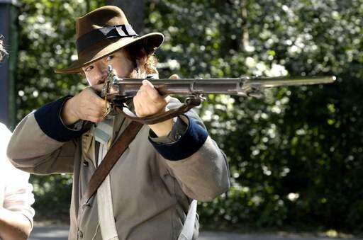 Terrance Welch of Kansas Hill, Wisconsin portrays a Corporal in the Confederate 11th Louisiana Infantry during Lake Villa Civil War Days at the Lehmann Mansion.