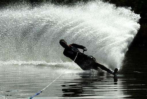 Mike Beinhauer of Naperville water-skis on the Fox River in St. Charles Monday. Beinhauer said he started water skiing when he was 5, and after a long time off he has taken it up again to teach his kids.