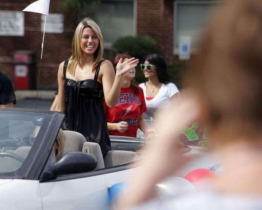 Junior homecoming queen Katelyn Stonecipher, waves to the crowd during the South Elgin High School homecoming parade Saturday.