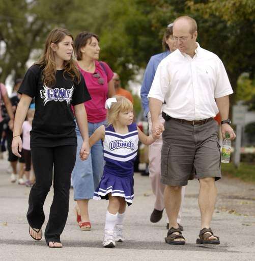 Hanna's GEM performance partner, Rylee Neri, Hanna Bothmann, 8 and her father Rich Bothmann of Grayslake walk in the Lamb Farms annual Buddy Walk to bring awareness to Down syndrome at it's Libertyville campus.