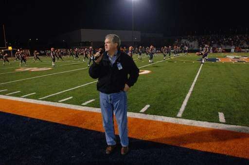 WEEK 5- Superintendent Dr. Mark Mitrovich dedicates the new football field before the start of the Wheaton Warrenville South at Naperville North football game Friday.