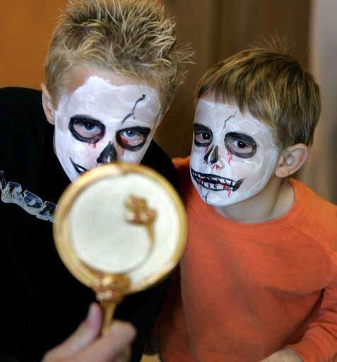Devon Shamrock and his brother Dylan, both of Lake Villa, take a look at face paintings they had done at Fox Lake's annual Oktoberfest at Lakefront Park. George LeClaire | Staff Photographer