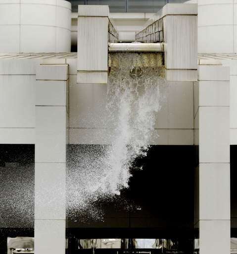 High winds blast the the water sideways from a fountain at Renaissance Hotel in Schaumburg.