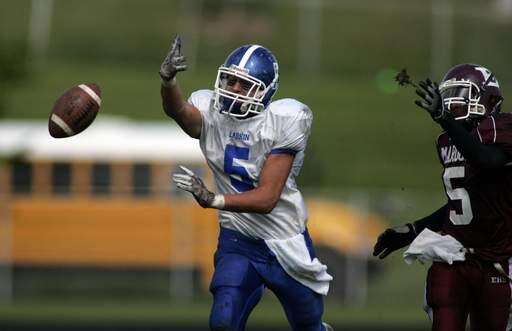WEEK 6 - Larkin's Trevor Whitehead, (15) and Elgin's Demaj Collier, (21) battle for a pass during football at Memorial Field in Elgin Saturday: October 3, 2009.