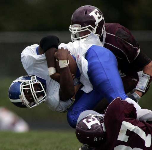 WEEK 6 - Larkin's Jalen Williams, (2) is brought down by a host of Elgin players during football at Memorial Field in Elgin Saturday: October 3, 2009.