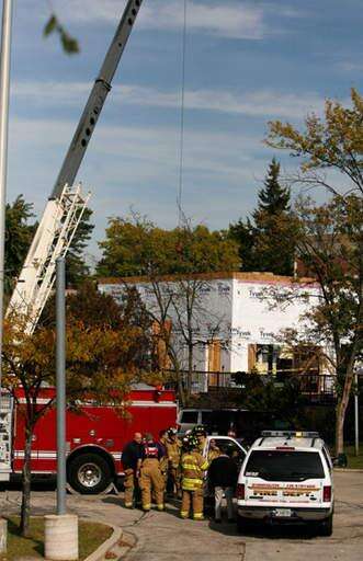 Part of an addition to Wool Street Grill and Sports Bar collapsed Tuesday afternoon in Barrington. One worker with, Christian Jacob Home Builders, with minor injuries was transported to Good Shepherd Hospital . George LeClaire | Staff Photographer