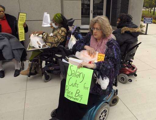 Sharon Lamp of Des Plaines waits with other physically challenged protesters before a board meeting at the Pace Headquarters in Arlington Heights. Bill Zars | Staff Photographer
