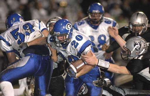 WEEK 8- Geneva's Michael Santacaterina plows through the Kaneland defense in first quarter .