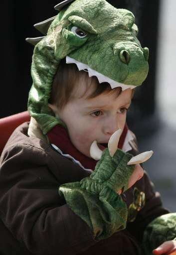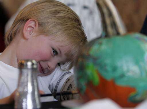Two and a half year-old Carter First of Hoffman Estates giggles as he paints a pumpkin. Brian Hill | Staff Photographer