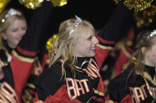 WEEK 9- Batavia senior cheerleaders take the the field for a half-time show.