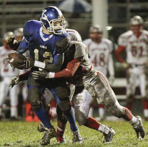 WEEK 9- South Elgin's Sean Kolber (11) pulls down a Larkin ball-carrier during their game on Friday night at Memorial Field.
