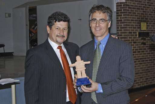 Little City board of directors President Fred Lebed, left, gives Cook County Sheriff Tom Dart the "Spirit of Inukshuk Award.