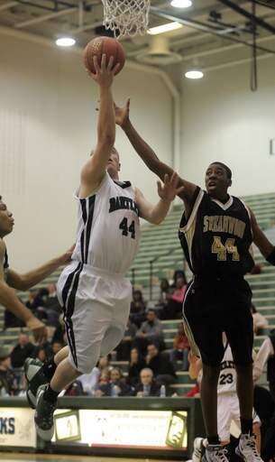 Bartlett's Lance Whitaker goes to the hoop against Streamwood's Lorenzo Mitchell.