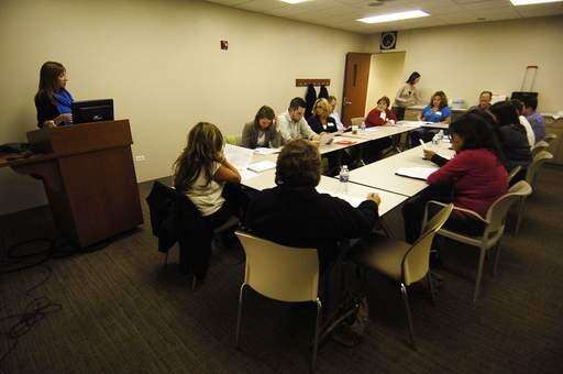 ESL students listen to instructor David Wolff during a class at SER-Jobs for Progress Inc. of Lake County in Waukegan. The organization is looking for bilingual volunteers. Paul Valade | Staff Photographer