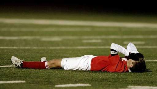 Max Rosenfelder of Marmion Academy reacts to his team's 2-1 loss to Freeport in double overtime during the Barrington boys soccer supersectional.
