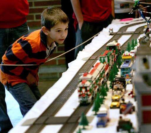 Robert Fotopoulos, 8 of Naperville, gets a closer look at a Lego train going by in the Lego train display at the Great Midwest Train Show at the DuPage County Fairgrounds in Wheaton on Sunday.