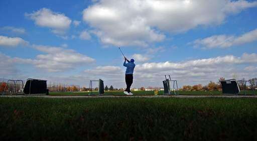 Dennis Matheson of South Elgin takes advantage of Monday's sunny and mild weather to hit a bucket of balls at Birdies and Eagles miniature golf and driving range in South Elgin.