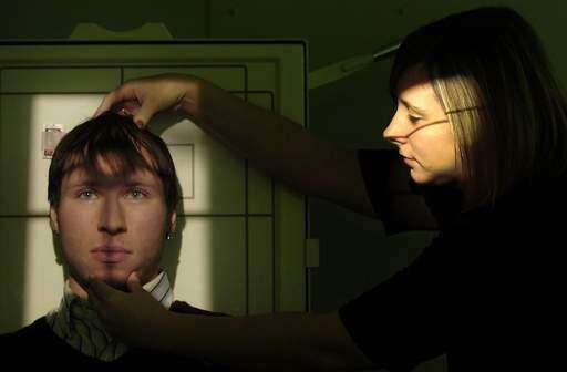 Radiology student Kelly Melligan works in the lab doing facial bone X-rays and other parts of the body for her class at Harper College with test subject Chris Kramer of Hoffman Estates.