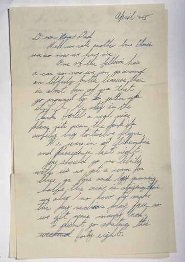 The contents are sometimes hard to decipher. Many of the letters, which begin, "Dear Mom and Dad," are in pencil. His spelling is often wrong - the word "stuff," for example, is spelled "stough." Like many of his generation, Washburn quit high school to join up.