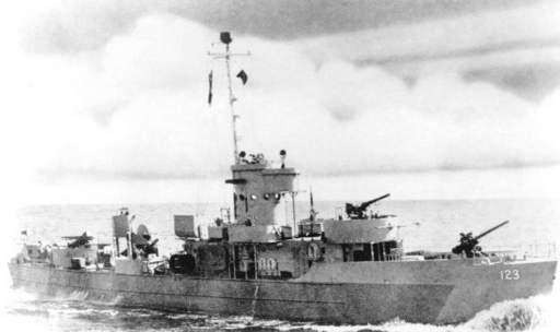 A U.S. Navy photo of Harold Washburn's ship, LCS (L)(3) 123, commissioned in 1944 and scrapped in 1947. Courtesy of navsource.org