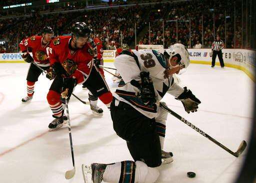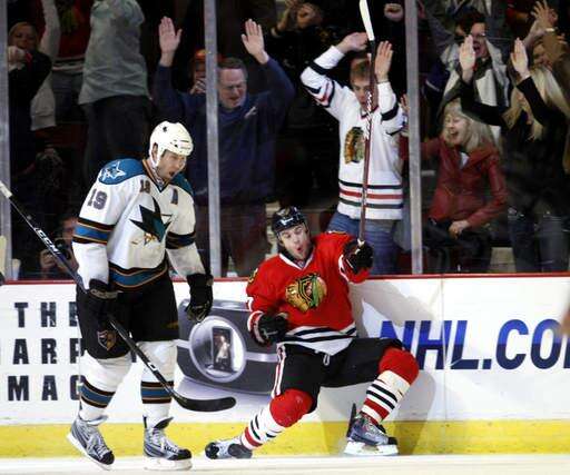 San Jose took a 3-1 lead early in the second period, but the Hawks battled back for a 3-3 tie going to the third on goals by Patrick Kane and John Madden.