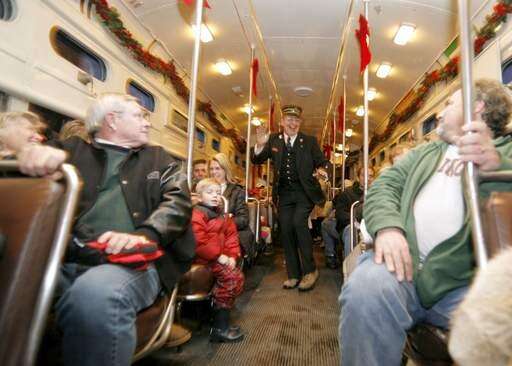 Stopped, momentarily at the Trolley Museum, Tony Stencel of Long Grove and son Alex, 9, and daughter Julia, 5, clapped and sang along to several carols. A few verses into "Santa Claus is coming to town," the man himself made an appearance.