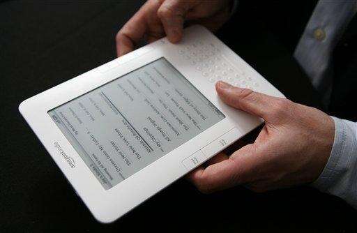 The Kindle 2 electronic reader is shown at an Amazon.com news conference in New York. Apple's new touch-screen "tablet" computer, expected to be unveiled Wednesday, Jan. 27, 2010, could give publishers the alternative to Amazon.com they have been craving and give consumers a new way to think about reading books without paper. Associated Press