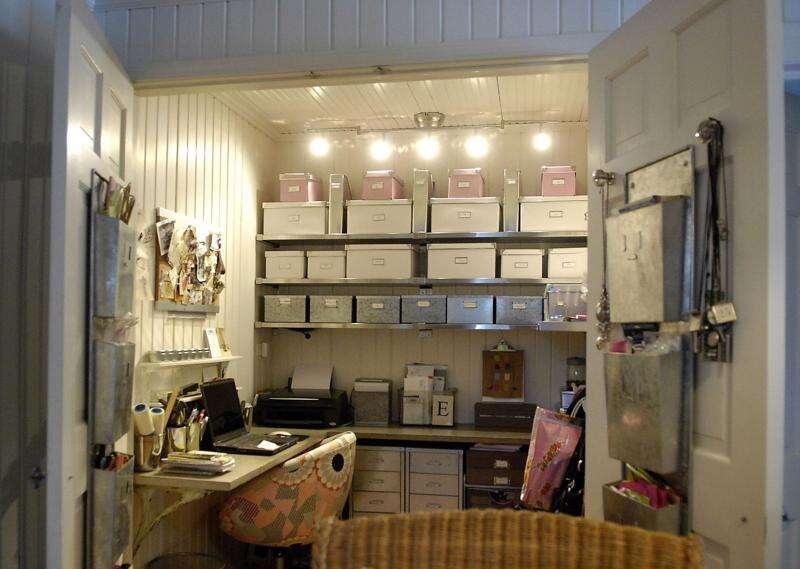 And hidden off the dining room behind double doors is a modern office - outfitted from IKEA and Pottery Barn. The Hills crafted this from an L-shaped area that had little use.