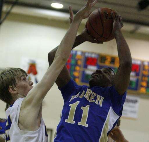 Warren's Craig Burton shoots over Lake Forest defender Josh Burns.